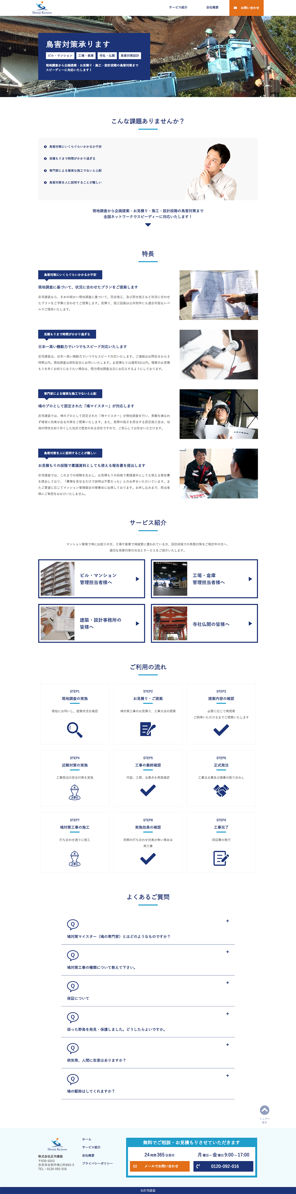 事業内容から、信頼感を得られるようなフォントやアイコンを使用してデザインしました。